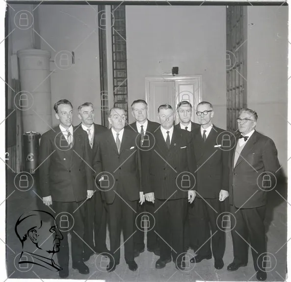 svartvit, grupp, män, kostymer, slipsar, inomhus, formella kläder, stående, möte, 1900-tal, affärsmän, stil, professionella, bakgrund, fotografi, traditionell, samling, ansikten, stiliga, representation