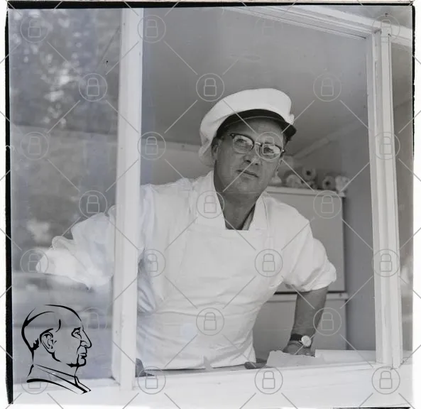 kock, fönster, restaurang, vit, kläder, hatt, man, kök, servering, retro, svartvit, professionell, matlagning, hantverk, service, traditionell, bakgrund, disk, köksutrustning, leende, arbetsplats, 1900-tal, yrke, mat, café, kund, verksamhet, lokal, hantverkare, stil