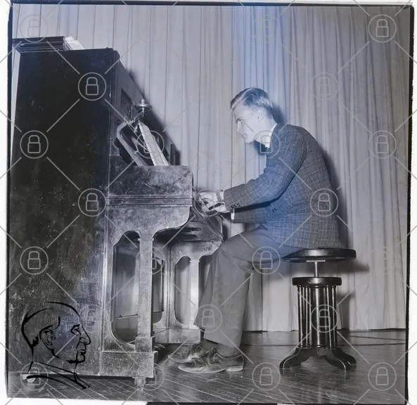 piano, man, spela, musik, svartvitt, kläder, sittande, notblad, scen, 1900-tal, inomhus, koncentration, instrument, klassisk, stil, fotografi, retro, performance, kultur, underhållning, talang, artist, föreställning, ljud, melodier, kreativitet, uttryck, hobby, passion, musikalisk