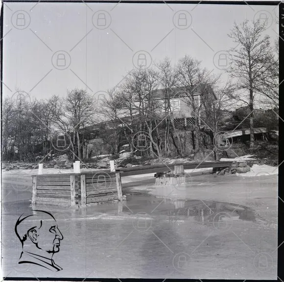 sjö, is, brygga, hus, träd, klippor, vinter, landskap, natur, reflektion, svartvit, stillhet, vatten, byggnad, friluftsliv, lugn, panoramavy, skandinavisk, utomhus, miljö, fotokonst, traditionell, avskildhet, idyll, sjölandskap, fridfull, skugga, himmel, struktur