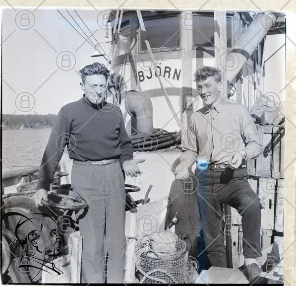 fiskare, båt, sjöfart, hav, skärgård, män, arbete, 1900-tal, tradition, fiskeutrustning, träbåt, skärgårdsfiske, maritim, nostalgi, landskap, sjö, verktyg, fiske, båtliv, historia, Björn, fotografi, svartvitt, vintage, manuell, fiskeindustri, sjömän, båtdäck, fiskehistorik, marin