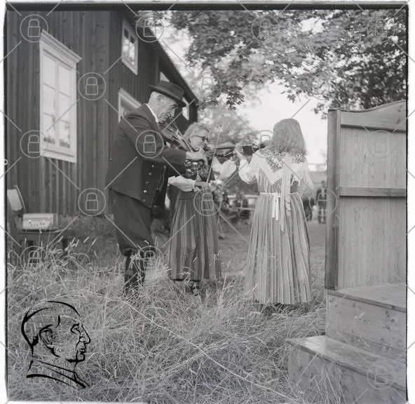 man, fiol, barn, traditionell, kläder, folkmusik, utomhus, gräs, byggnad, trä, fest, kultur, gammaldags, samspel, glädje, musik, dans, sommar, landskap, svensk, historisk, familj, lek, natur, evenemang, folklig, hantverk, gemenskap, barnkläder, spelande, uppträdande