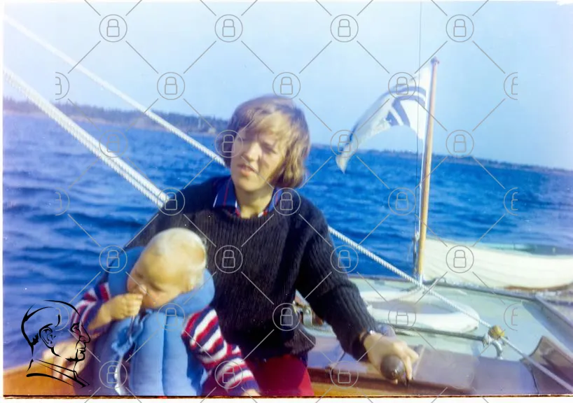 båt, segling, hav, kvinna, barn, blå, tröja, sjö, flagga, sommar, familj, natur, vatten, leende, kläder, sol, semester, minnen, utflykt, fritid