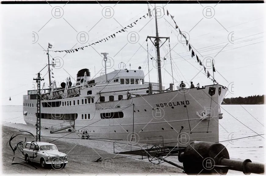 fartyg, Noroland, svartvit, hamn, flaggor, sjöfart, båt, kaj, 1900-tal, lastfartyg, marina, transport, sjö, ankarplats, resor, historia, skepp, passagerare, last, båtliv, kust, sjövägar, tradition, segling, hav, båtar, fartygsdesign, sjöman, hamnliv, båtkultur