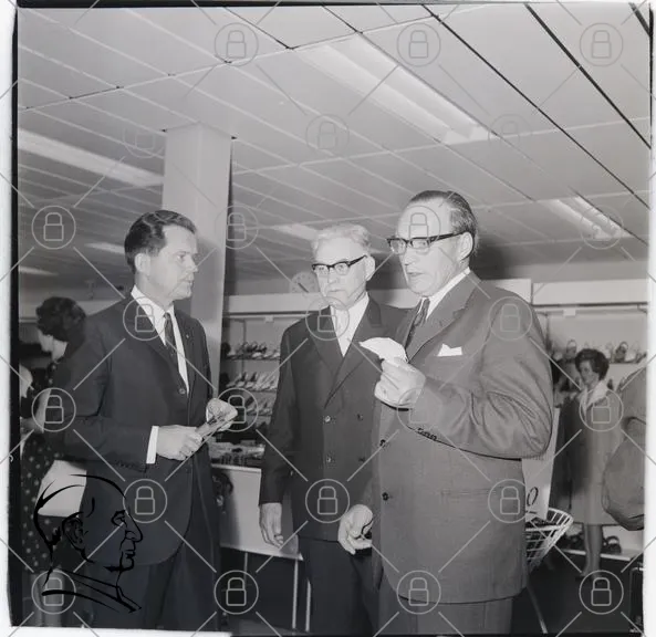 män, kostymer, glasögon, affär, skor, 1960-tal, svartvitt, möte, inomhus, kläder, stil, diskussion, butik, mode, herrar, fotografi, retro, socialt, interaktion, detaljer, miljö, vintage, affärsmän, presentation, stiliga, accessoarer, professionell, affärsliv, historisk, samarbete