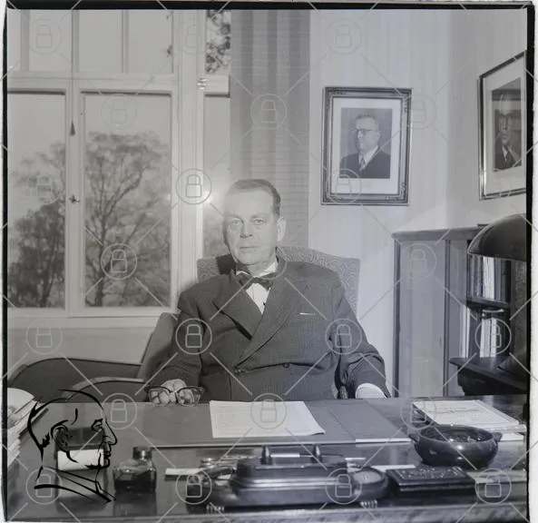 man, kontor, skrivbord, fönster, porträtt, böcker, dokument, kostym, slips, gammal, svartvitt, inredning, möbler, affärsmann, professionell, tidigt 1900-tal, kontorsutrustning, seriös, ansikte, arbetsmiljö
