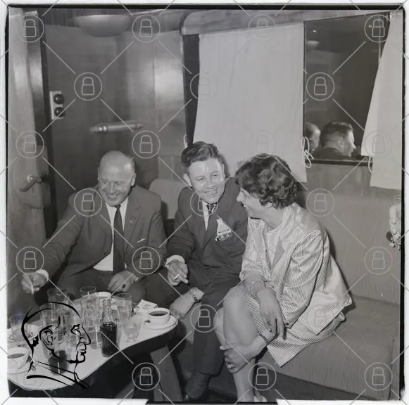vuxna, män, kvinna, kläder, 1960-tal, fest, drycker, skratt, samtal, inomhus, soffa, glas, svartvitt, socialt, sällskap, eleganta, interiör, retro, stil, uttryck, nöje, samvaro, vintage, fotografi, historiskt, tidsepok, avslappnat, leenden, affärsmän