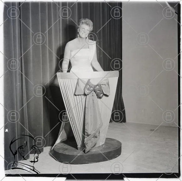 modell, scen, klänning, podium, svartvitt, 1950-tal, glamour, fotografi, mode, stil, smycken, hår, tyg, belysning, bakgrund, presentation, skönhet, elegans, konst, vintage, utställning, föreställning, kvinna, pose, klädd, smink, fotografering, retro, stilfull, scenkonst
