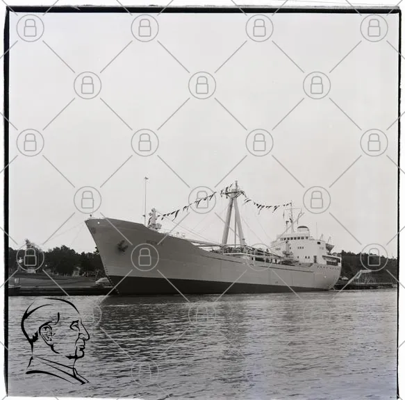 fartyg, båt, hamn, lastfartyg, sjöfart, flaggor, vatten, transport, industri, marin, skepp, last, kaj, segel, navigering, kust, byggnad, landskap, svartvit, foto, stilla, lugn, tradition, historia, sjö, ankarplats, lastning, lossning, sjötransport