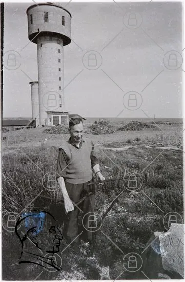 man, byggnad, torn, landskap, gammal, svartvit, verktyg, fält, historia, jordbruk, natur, tradition, fotografi, 1900-tal, rural, landsbygd, kultur, människa, arbete, struktur, sten, gräs, himmel, utsikt, gammal teknik, anläggning, monument, ensamt, stilla, gammal tid