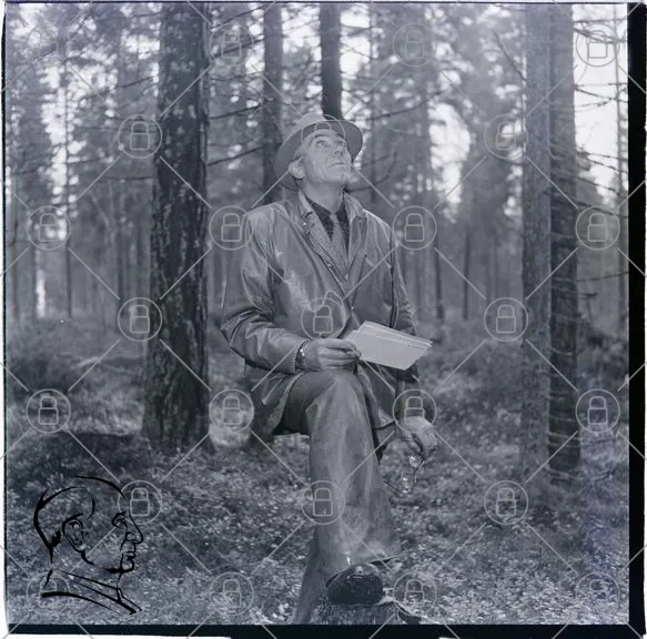 man, skog, träd, hatt, kläder, papper, natur, svartvitt, fotografering, gammal, stillhet, reflektion, miljö, utomhus, landskap, svensk, vintage, ensam, eftertänksam, promenad, tystnad, traditionell, kultur, historia, människa, känsla, lugn, avkoppling, naturupplevelse