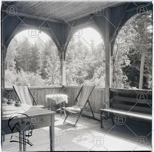 veranda, trä, stolar, bord, skog, natur, fönster, ljus, avkoppling, sommar, inredning, utomhus, möbler, landskap, stillhet, kaffe, te, duk, bänk, arkitektur, vintage, svartvit, perspektiv, rum, atmosfär, lugn, detaljer, design, tradition, utrymme, utsikt