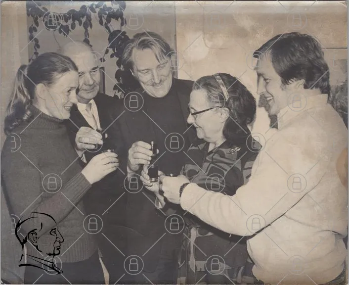 personer, grupp, skåla, svartvitt, leende, inomhus, kläder, glas, fest, samvaro, tradition, minnen, familj, vänner, 1970-tal, gemenskap, glädje, fotografi, interaktion, socialt, nostalgi, samling, skratt, uppvaktning, firande, kultur, historia, relationer
