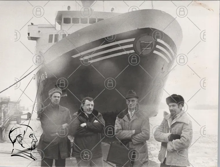båt, skepp, män, vinter, is, hamn, svartvitt, kläder, sjömän, fotografi, 1900-tal, grupp, arbete, resande, lastfartyg, tradition, historia, maritim, transport, fiske
