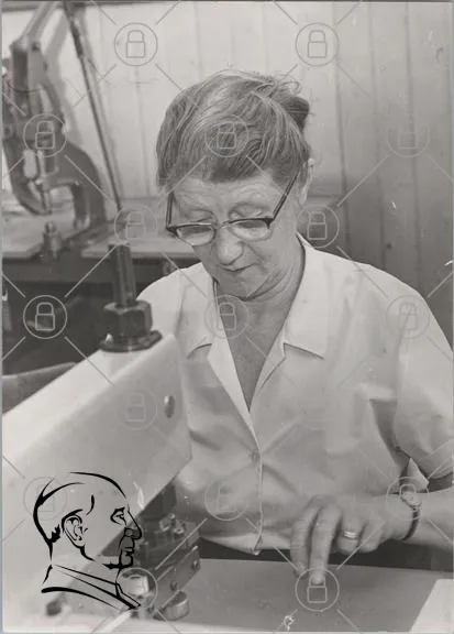 kvinna, symaskin, arbete, glasögon, vintage, svartvit, hantverk, textil, sömnad, industri, 1900-tal, handarbete, kreativitet, kläder, sy, verkstad, tradition, yrke, kvinnohistoria, arbetsmiljö
