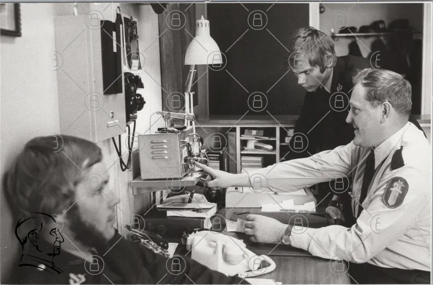 svartvitt, kontor, män, teknik, telefon, skrivbord, lampor, maskin, 1970-tal, arbete, kommunikation, dokument, kläder, ansiktsuttryck, interiör, vintage, retro, utrustning, samtal, fokus, samarbete, studera, forskning, projekt, dator, skrivmaskin, kontorsmiljö, kreativitet, diskussion, team