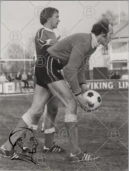 fotboll, spelare, boll, sport, svartvitt, match, mål, träning, lag, tävling, utomhus, 1970-tal, idrott, fotbollsdräkt, publik, arena, motion, man, aktivitet, konkurrens, teknik