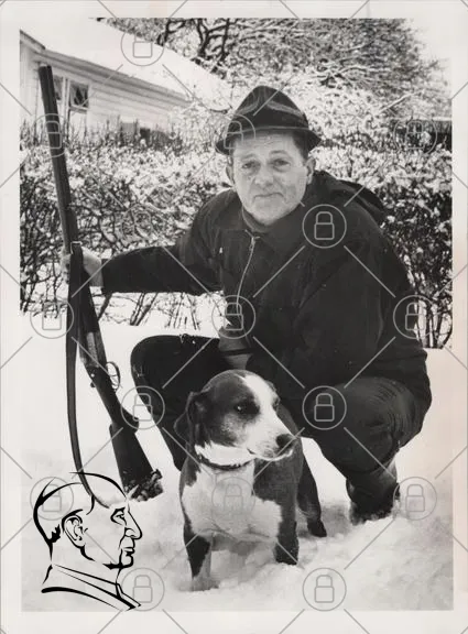 man, hund, gevär, snö, vinter, jakt, kläder, hatt, svartvitt, utomhus, natur, landskap, tradition, sällskapsdjur, avbildning, porträtt, gammal, nostalgisk, rustik, jaktutrustning