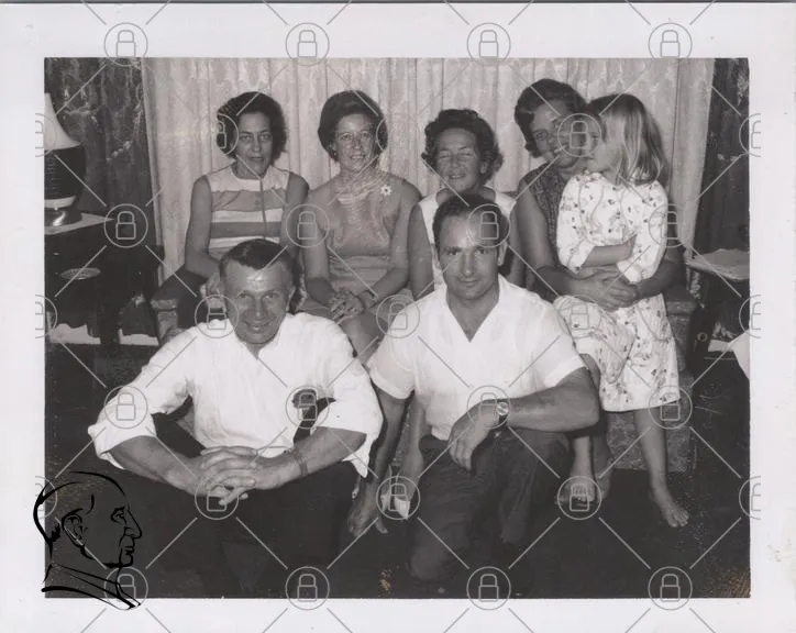 familj, porträtt, svartvitt, 1960-tal, kvinnor, män, barn, leende, inomhus, kläder, vintage, samling, släkt, minnen, tradition, gemenskap, glädje, nostalgisk, interiör, soffor