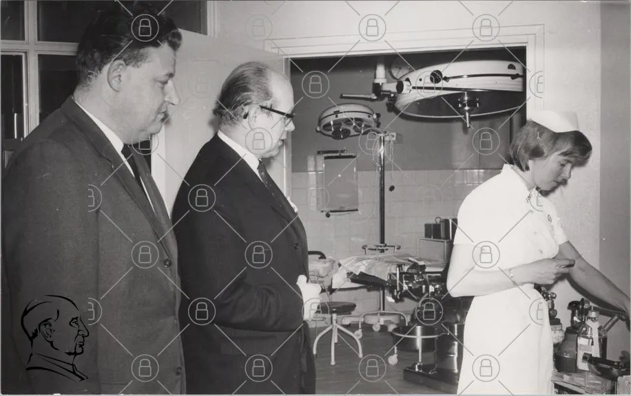 sjukhus, operation, läkare, medicinsk utrustning, kirurgi, 1960-tal, män, vit rock, kontor, medicinsk miljö, besök, professionell, sjukhusmiljö, medicinsk personal, forskning, teknik, medicinska verktyg, steril, sjukhusrum, observation, medicinsk historia