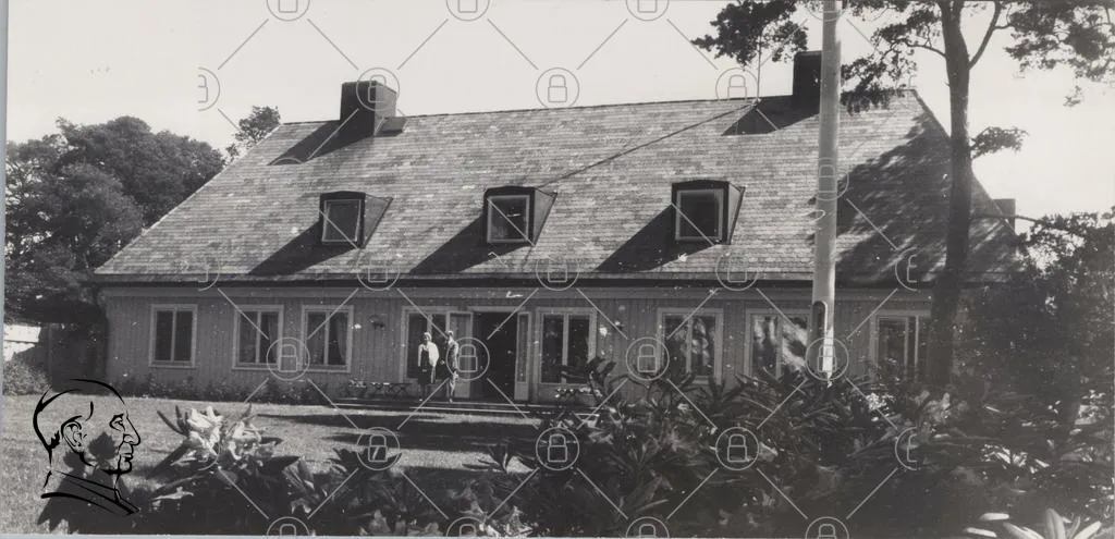 hus, byggnad, tak, fönster, dörr, trädgård, människor, svartvit, landskap, natur, växter, gräs, sommar, arkitektur, traditionell, svensk, utomhus, familj, historia, gammal