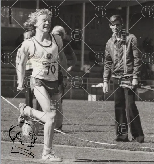 löpare, sport, tävling, Viking Line, svartvitt, atlet, 1970-tal, stadion, motion, man, kvinna, kläder, nummer 70, publik, träning, lopp, idrott, gym, prestation, ungdom, retro, fotografi, historisk, aktivitet, utomhus, hastighet, fokus, energi, rörelse, glädje, prestation