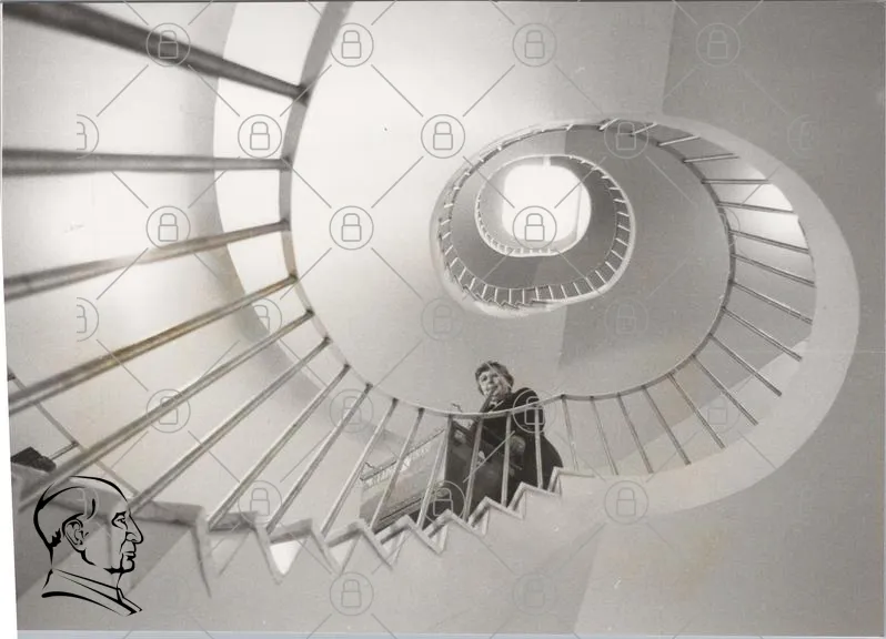 trappa, spiraltrappa, svartvit, arkitektur, inomhus, design, räcke, ljus, perspektiv, person, vintage, fotografi, cirkel, linjer, geometrisk, stil, modern, byggnad, konst, skugga, struktur, detaljer, höjd, djup, rum, atmosfär, retro, minimalistisk, form, komposition