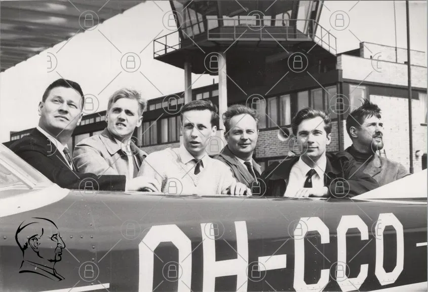 flygplats, män, svartvitt, kontrolltorn, 1960-tal, flygplan, uniformer, gruppfoto, historia, luftfart, teknik, professionella, samarbete, fotografering, vintage, nostalgi, flygpersonal, civil luftfart, säkerhet, kommunikation, teamwork, flygoperatörer, flygindustri, resor, transport, luftfartsmyndighet, flygplatsmiljö, män i kostym, flygplansdelar, flygplansregistrering