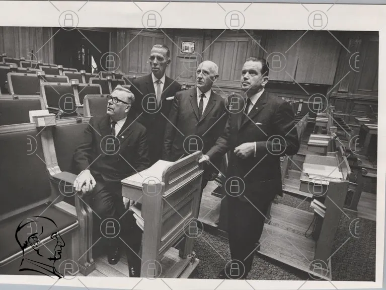 politiker, möte, svartvit, inomhus, kontor, stolar, diskussion, grupp, formell, kläder, 1900-tal, historisk, beslut, ledarskap, parlament, samling, män, presentation, dokument, skrivbord