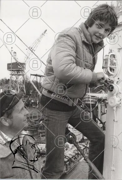 svartvitt, män, arbete, båt, skepp, industri, 1970-tal, kläder, teknik, verktyg, marin, konstruktion, hamn, maskiner, säkerhet, samarbete, utrustning, fotografi, historia, nostalgi