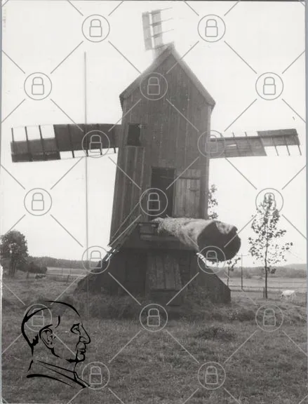 väderkvarn, trä, landskap, fält, byggnad, gammal, svensk, natur, vindkraft, lantliv, svartvit, traditionell, dörr, fönster, grönska, historia, landsbygden, kvarnvingar, jordbruk, kultur, rustik, landskapsbild, fotografering, utomhus, struktur, skog, åker, högar, växtlighet, panorama