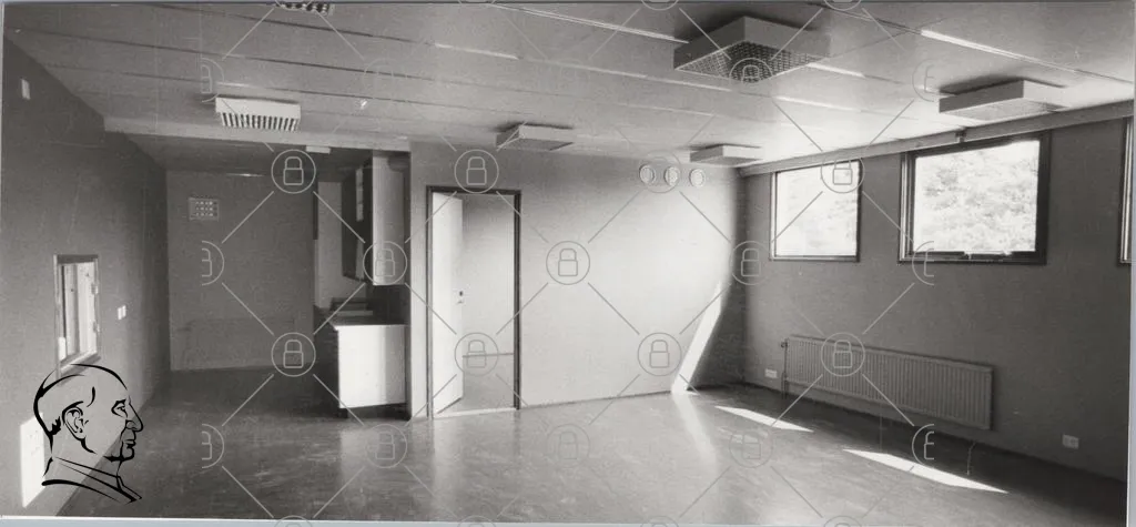 rum, väggar, fönster, dörr, golv, tak, belysning, kontor, minimalistisk, svartvit, möbler, utrymme, inredning, moderna, design, väggklockor, öppet, ljus, arkitektur, kontorsmiljö