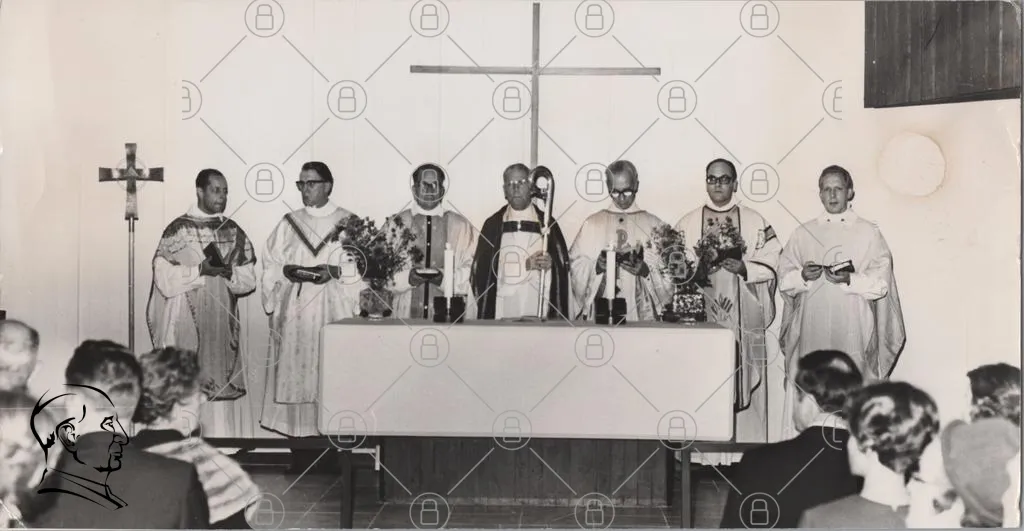 präst, kyrka, ceremoni, altare, kors, kläder, blommor, bön, tradition, religiös, samling, män, svartvitt, andakt, högtid, gemenskap, liturgi, symbol, tro, rituell, välsignelse, sakrament, helig, ledare, församling, gudstjänst, ceremoniel, historia, kultur