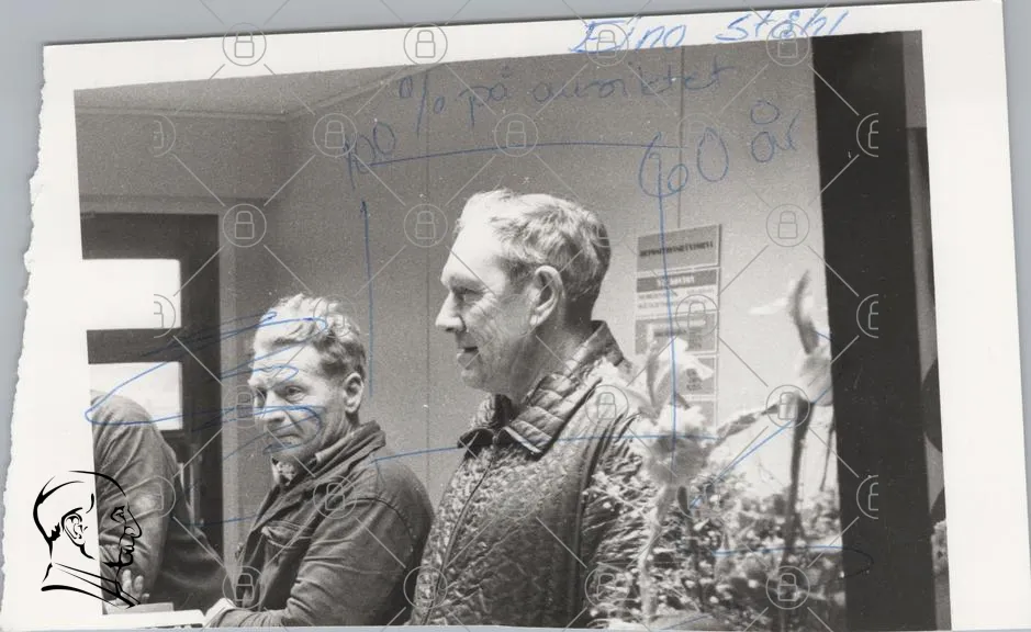 svartvitt, foto, män, kontor, 100%, på, arbetet, 60, år, Elma, stat, ansikten, kläder, interiör, 1980-tal, retro, dokument, samtal, uttryck, minnen, historia