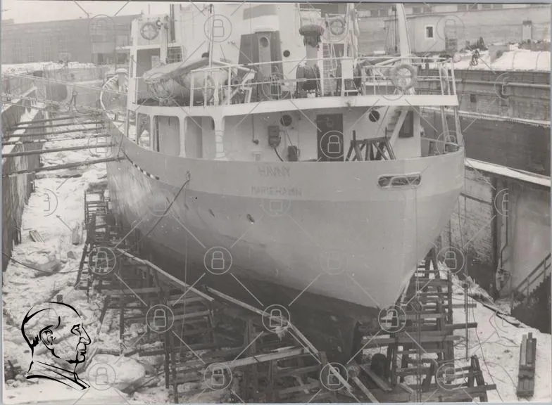 båt, skepp, Fanny, varv, träställningar, is, hamn, svartvitt, marin, reparation, vatten, byggnad, fartyg, sjöfart, industri, 1900-tal, konstruktion, lastfartyg, sjö, docka, arbetsplats, historisk, transport, hav, sjöman, utrustning, maskineri, skrov, däck, säkerhet