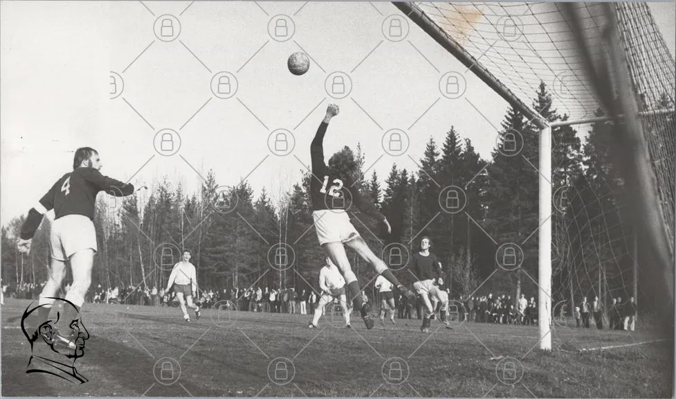 fotboll, spelare, mål, målvakt, nummer 12, gräsplan, publik, träd, svartvitt, sport, tävling, lag, skott, boll, rörelse, idrott, ungdomar, match, fotbollsplan, utomhus, sommar, aktivitet, spel, prestation, gemenskap, laganda, tradition, ungdomsfotboll, fotbollsmatch, träning, målskytte