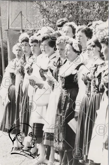 kvinnor, traditionell, kläder, sång, fest, kultur, folkdräkt, svartvitt, samling, blommor, medeltid, gemenskap, evenemang, historisk, musik, uppträdande, glädje, uttryck, gemensam, festlighet, klänningar, hattar, ceremonin, lokal, samhälle, artister, folklor, minnen, nostalgi, uttryck