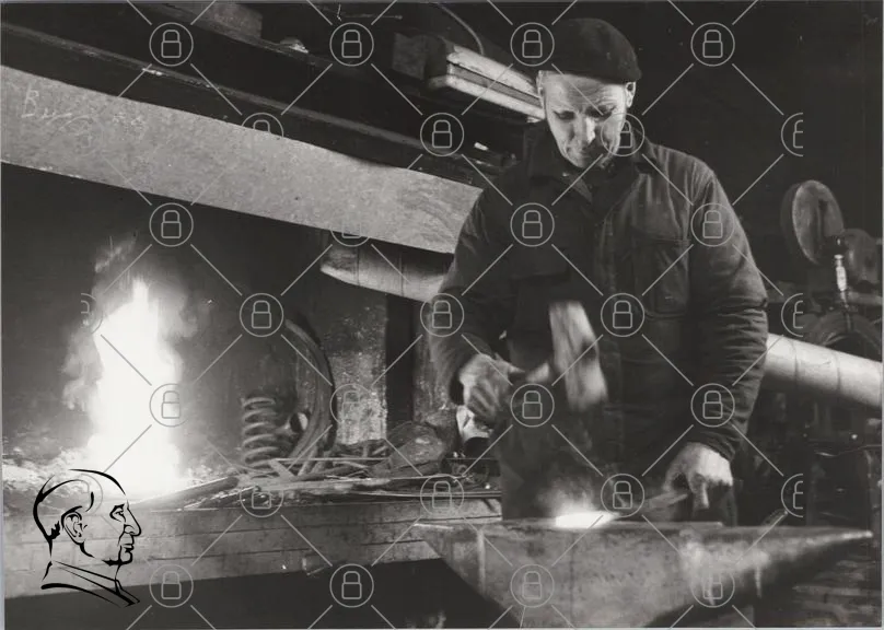 smed, smedja, hammare, städ, eld, metallarbete, hantverk, verktyg, arbetskläder, traditionellt hantverk, smide, glöd, värme, arbetsplats, man, arbete, industri, metall, verkstad, hantverkare