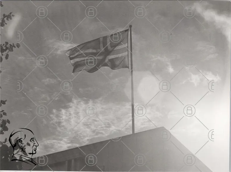 flagga, Norge, svartvit, himmel, moln, byggnad, stång, nationalflagga, symbol, vind, utomhus, landskap, skandinavisk, kultur, historia, identitet, patriotism, fotografering, tradition, design, geografi, representation, vimpel, flaggstång, skugga, ljus, struktur, arkitektur, fotografering