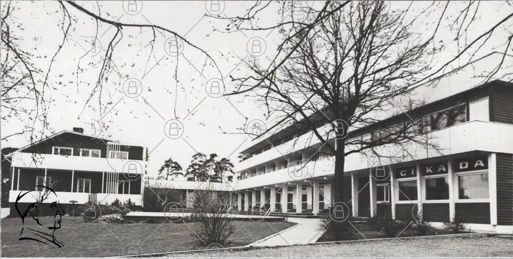 byggnad, träd, gård, fönster, arkitektur, svartvit, landskap, natur, skola, institution, modern, utomhus, växtlighet, stolar, gångväg, tak, gräs, stilren, design, miljö, lugn, stillhet, perspektiv, linjer, struktur, gårdsplan, grönska, sommar, fotografering, historia