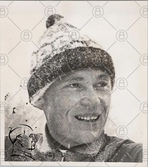 man, snö, vinter, hatt, leende, svartvitt, utomhus, kallt, ansikte, natur, kläder, sport, äventyr, fotografi, nostalgi, friluftsliv, glädje, snöfall, vinterkläder, traditionell, gammal, historisk, person, människa, vinterlandskap, skridskor, skidåkning, aktivitet, utflykt, vintersemester