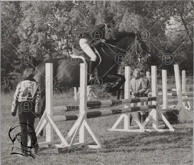 häst, ridning, hoppning, ryttare, hinder, träning, sport, utomhus, natur, svartvitt, ungdom, tävling, ekipage, ridkläder, ridstövlar, hästskötare, ridningsteknik, ridbana, hästsport, ridningsevent, ridlektion