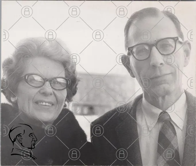 gammal, svartvit, foto, par, glasögon, leende, kvinna, man, vintage, porträtt, 1960-tal, kläder, ansikten, bakgrund, utomhus, nostalgi, familj, minnen, kärlek, relation