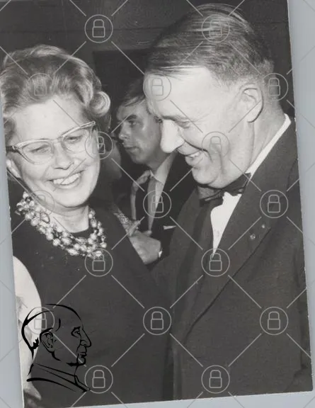svartvitt, foto, människor, leende, kvinna, man, glasögon, fest, kläder, smycken, 1960-tal, socialt, interaktion, bakgrund, ansikten, porträtt, vänskap, glädje, samvaro, minnen