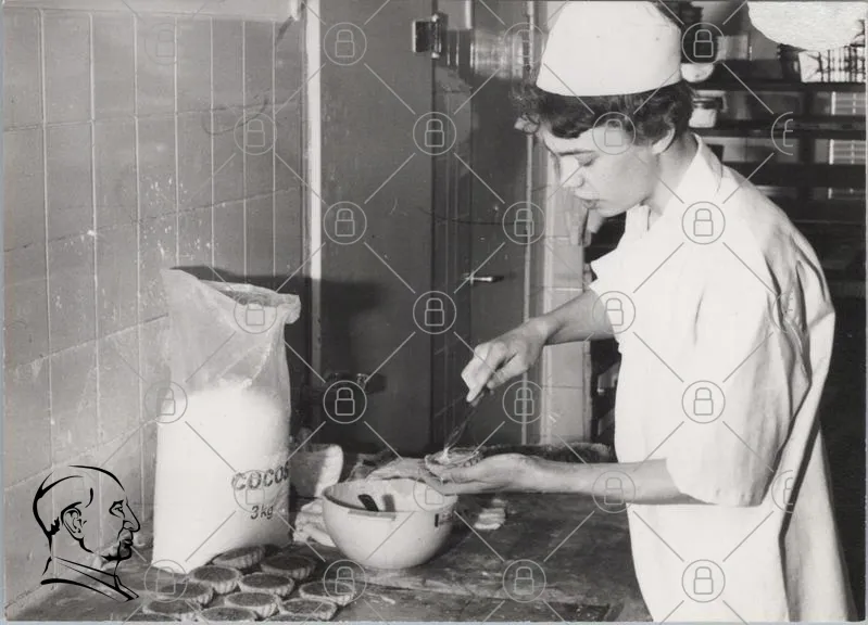 bakning, kock, kök, socker, kokos, ingredienser, skål, redskap, svartvitt, matlagning, ung, arbetsyta, förberedelse, professionell, hantverk, traditionell, restaurang, bakverk, mjöl, recept, handarbete, mat, livsmedel, yrke, kreativitet, fokus, noggrannhet, hygien, arbetskläder, bakformar