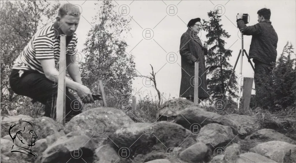 man, kvinna, natur, träd, stenar, gräs, svartvitt, utgrävning, kläder, verktyg, landskap, historia, arkeologi, monument, markeringar, gammal, tradition, forskning, kultur, fotografering