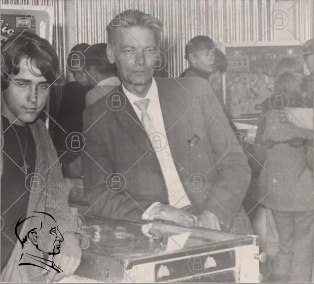 svartvitt, foto, män, spel, arkad, 1970-tal, retro, nostalgi, kläder, inomhus, leende, ungdomar, maskiner, underhållning, socialt, interaktion, vintage, stil, ansikten, miljö, tidsepok, kultur, aktivitet, sällskap, minnen, historiskt, gammal, teknik, nöje
