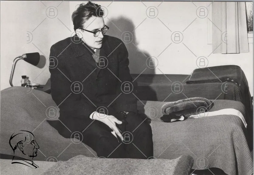 man, svartvitt, sittande, kläder, glasögon, inomhus, soffa, efterkrigstiden, 1900-tal, stil, uttryck, kontemplativ, rum, möbler, textil, fotografi, ungdom, intellektuell, kultur, historia