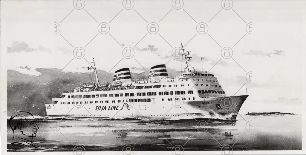 fartyg, Silja Line, kryssning, hav, sjöfart, passagerare, båt, resor, skärgård, linje, transport, havsutsikt, fartygsdesign, maritim, turism, sjö, båtliv, färja, nordisk, historia, illustration, svartvit, konst, arkitektur, sjötransport, passagerarfartyg, sjöresa, nöjeskryssning, sjöfartsindustri, fartygsmodell
