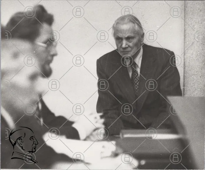 möte, diskussion, män, kostym, slips, bord, svartvitt, ansiktsuttryck, allvarlig, 1900-tal, inomhus, professionell, fokus, ålder, interaktion, rättssal, historisk, dokumentär, grupp, presentation